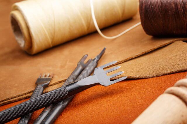shoe lasts hanging on the wall in the workshop